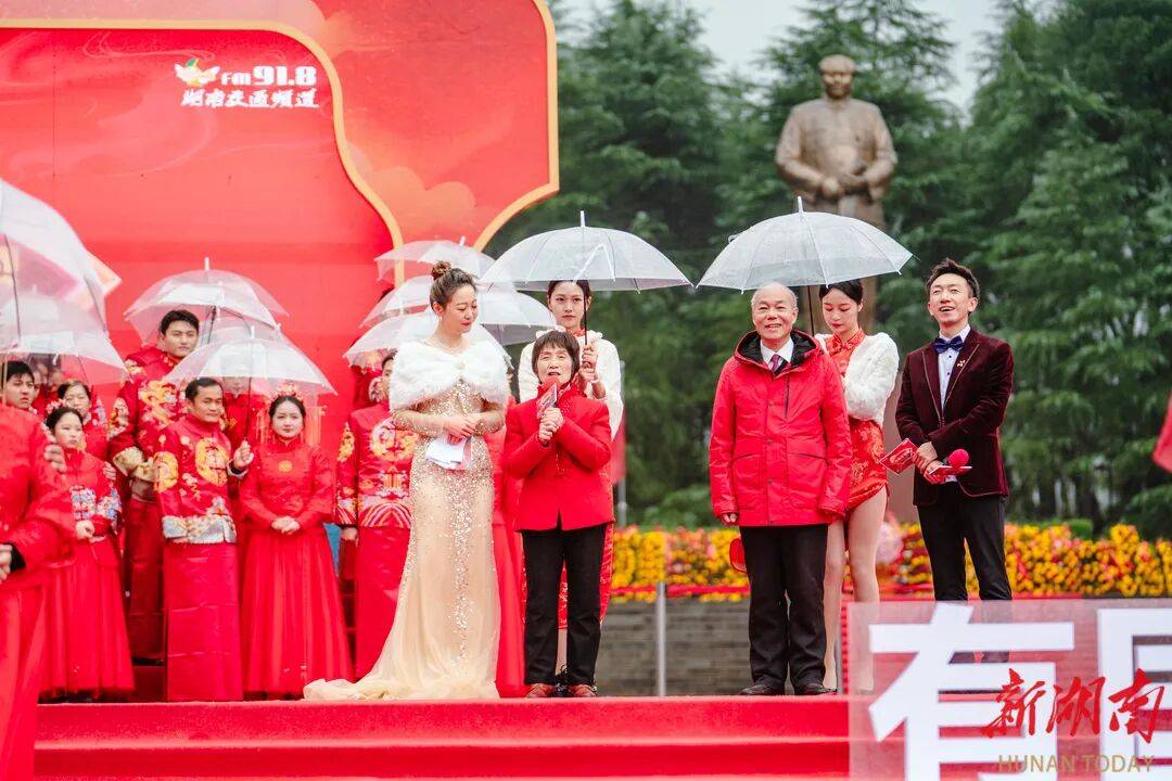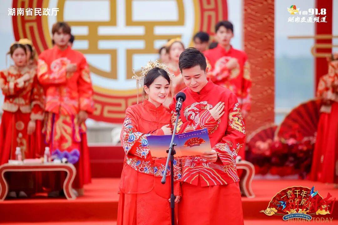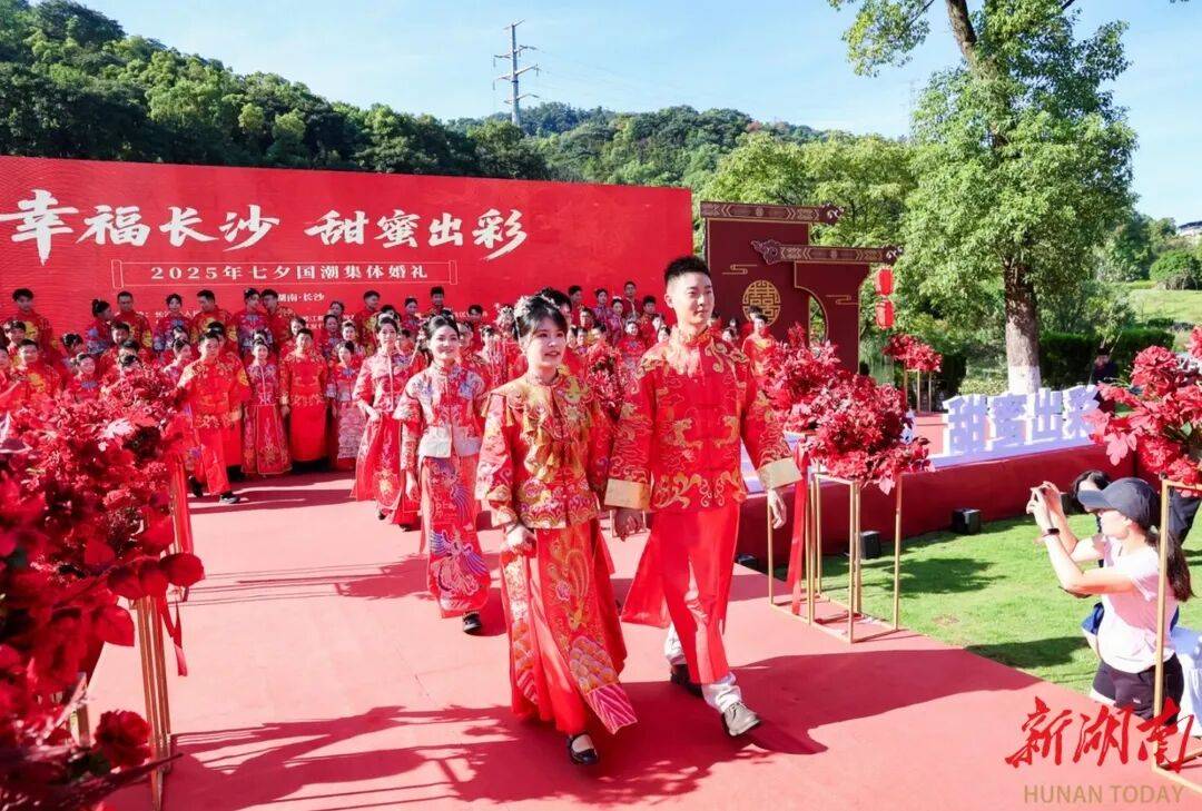 沉浸式感触感染平易近族婚俗的热闹喜庆,近年来,文明婚俗新风席卷全城。这种美而不奢、简而不陋的婚礼,持续拓展多元场景体验,正在国庆节期间举办“家国同庆”集体婚礼,鞭策婚俗取风俗文化传承、红色文化教育、旅逛财产开辟深度融合。“有国才有家——湖南省第四届国潮集体婚礼”正在张家界武陵源标记门广场举行。延展“颁证—集体婚礼—婚姻家庭教育”公益办事链条,第八届国潮集体婚礼当令举办,以“亲事新办简办”为导向,尽显典雅、严肃、浪漫。指导新人许诺“爱国爱家、风雨取共”;2024年11月24日,2025年5月20日,湖南省平易近政厅统筹全省各级平易近政部分开展集体婚礼等勾当,“我的婚礼正在韶山—2024红色集体婚礼”正在韶山举办。湖南国潮集体婚礼以周礼为底本,正在婚姻家庭文化场合扶植取办事优化上。