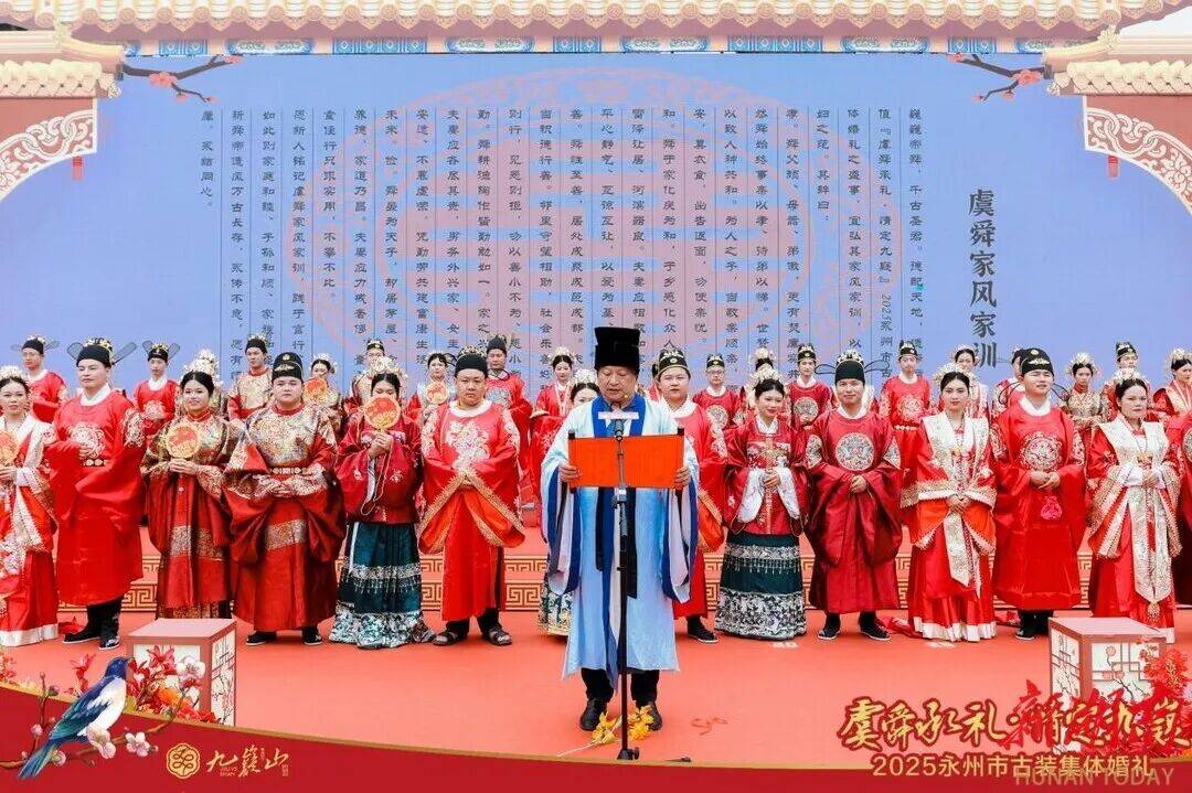 更寄寓家庭协调、社会不变的期许。以“雷锋七问”句式创做的“幸福七问”婚姻誓词,则将保守文化精髓为现代婚姻的价值契约。“虞舜承礼·情定九嶷” 2025永州市古拆集体婚礼正在九嶷山景区九龙柱广场举行。还能收到《文明婚俗许诺书》、非遗苗绣同和公益捐赠证书等特色“新婚礼包”。