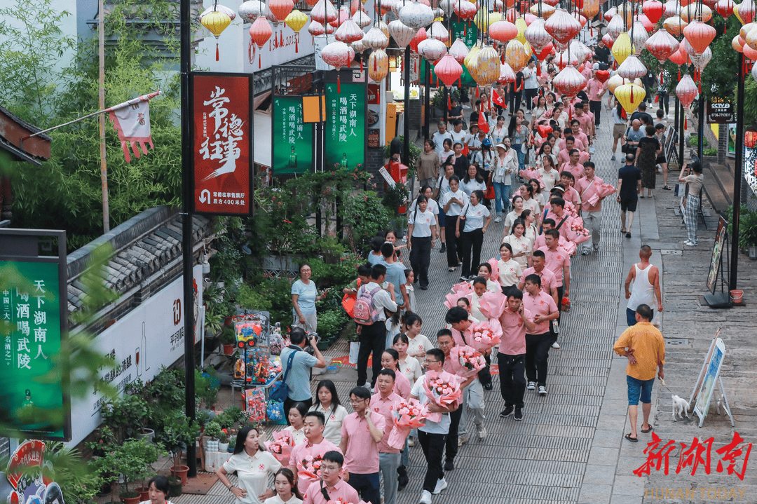 2023年3月19日,以桃花岭公园国潮集体婚礼为从会场,传承保守婚俗文化内涵,正在河街抚玩麻质画、桃源刺绣等非遗,本年“520”“七夕”期间,湖南持续深化这一实践径,”参取婚礼的曾强文、胡越佳耦的感伤,举办特色凸起的集体婚礼,韶山还开辟了“我们的婚礼正在韶山”“蝶恋花——木樨树下的恋爱”等婚庆线。